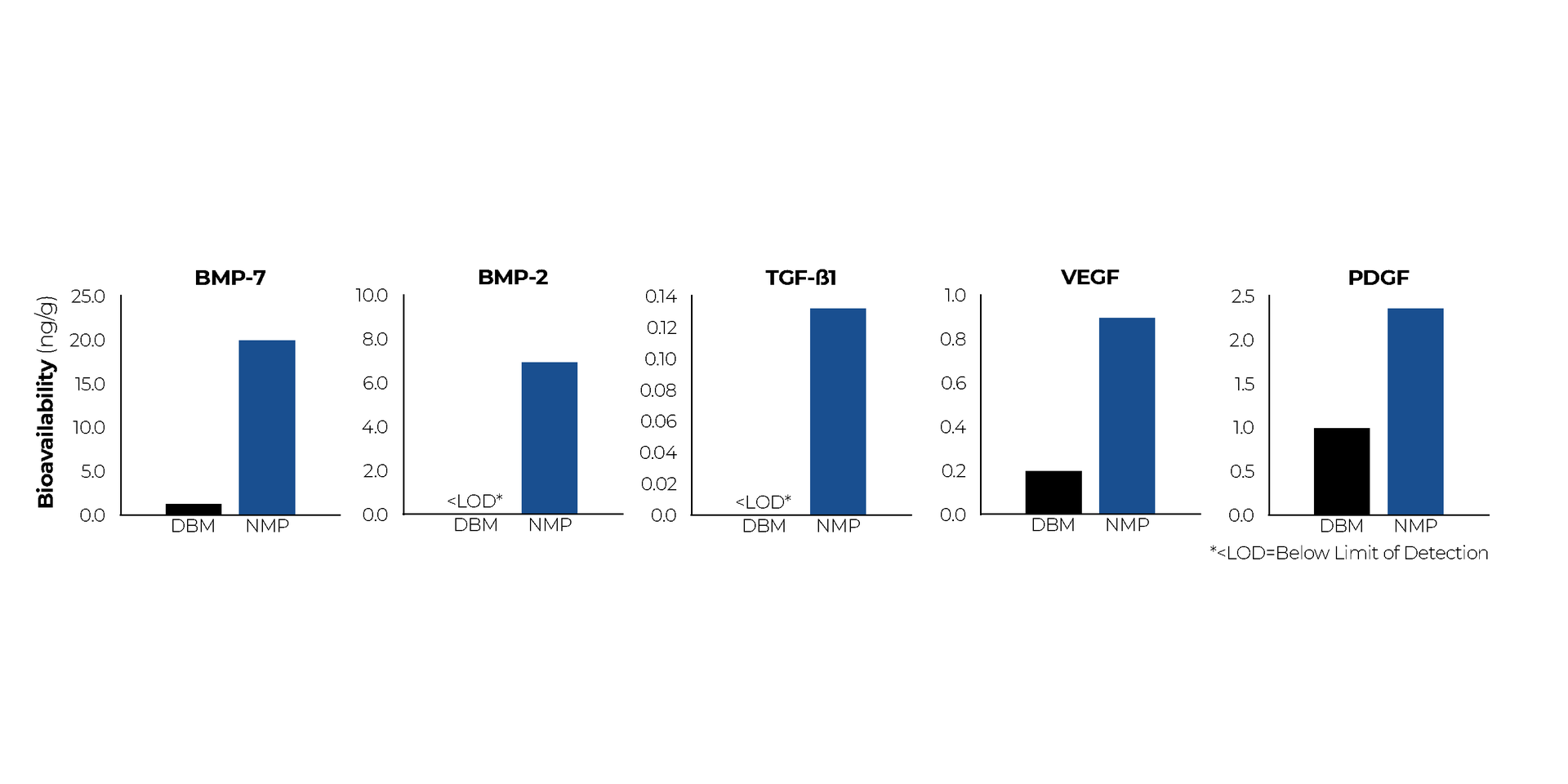 Bioavailability of multiple growth factors in NMP processed bone vs. DBM